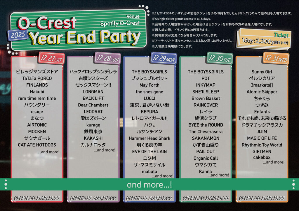 ※12/27-12/31のいずれかの前売チケットを予めお持ちでしたらドリンク代のみで他の日も入場できます。